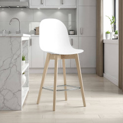 Tabouret snack pieds bois et assise polypropylène.
