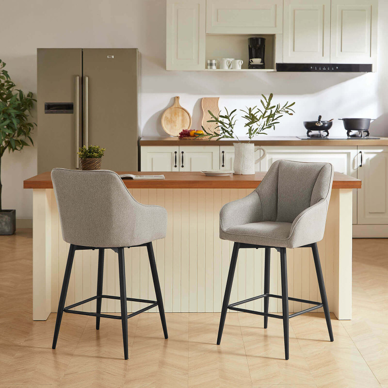 Fauteuil snack pivotant à 180° avec retour automatique. Pieds métal et assise en tissu 56% recyclé.
