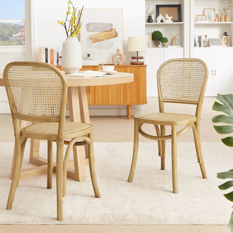 Brasserie - Chaise bois - Assise tressée - Dossier cannage