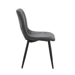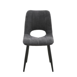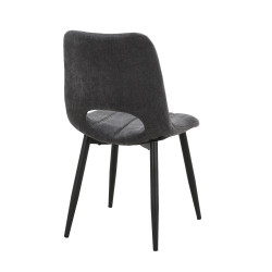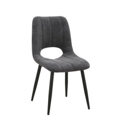Chaise avec pieds en métal, assise en tissu et coque rembourrée en polyuréthane.