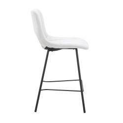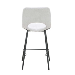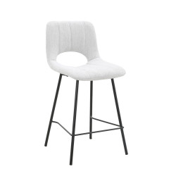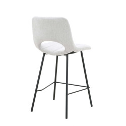 Tabouret snack en acier époxy noir, avec assise en tissu rembourrée de mousse polyuréthane.