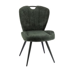 Chaise avec pieds en métal époxy et assise en tissu.