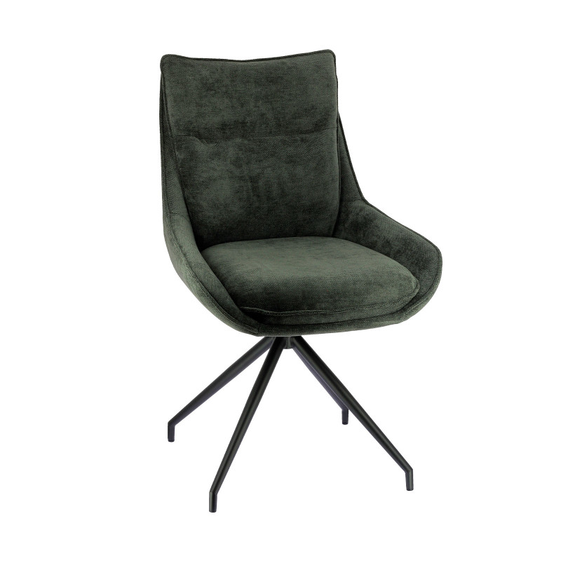 Chaise avec pieds en métal époxy et assise en tissu.