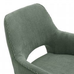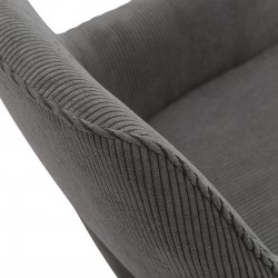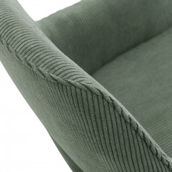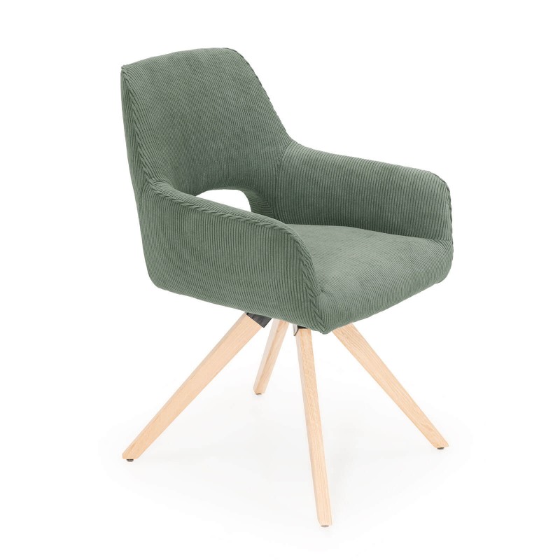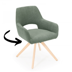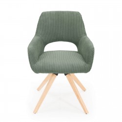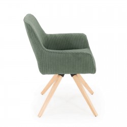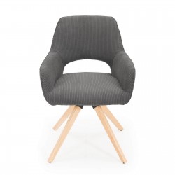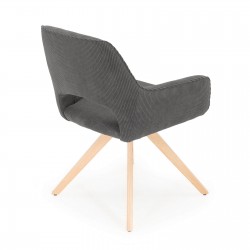 Fauteuil fixe avec pieds en bois et assise en tissu.